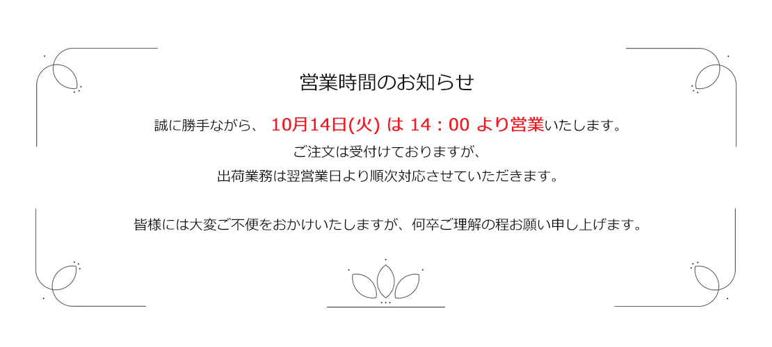 ¢¨ µÙÆüÁ°Æü¤Î¸á¸å¤Î¤´Ãíʸ¤ÏÍâ±Ä¶ÈÆü¡ÊµÙÆüÍâÆü¡Ë¤ÎȯÁ÷¤È¤Ê¤ê¤Þ¤¹
